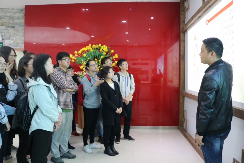 礼堂内展出的村庄时代变迁图、农民人均纯收入变化示意图,及村庄内完备的基础惠民设施、公共交通设施宣传图等,无不彰显出当地新农村建设的实绩与城乡一体化建设的高水平。在观看五四村文化宣传片时,同学们被村领导干部凝心聚力带领全村人民艰苦奋斗的事迹感动,对五四村从最初穷困的小乡村发展成为美丽休闲乡村的巨大变化称赞。
