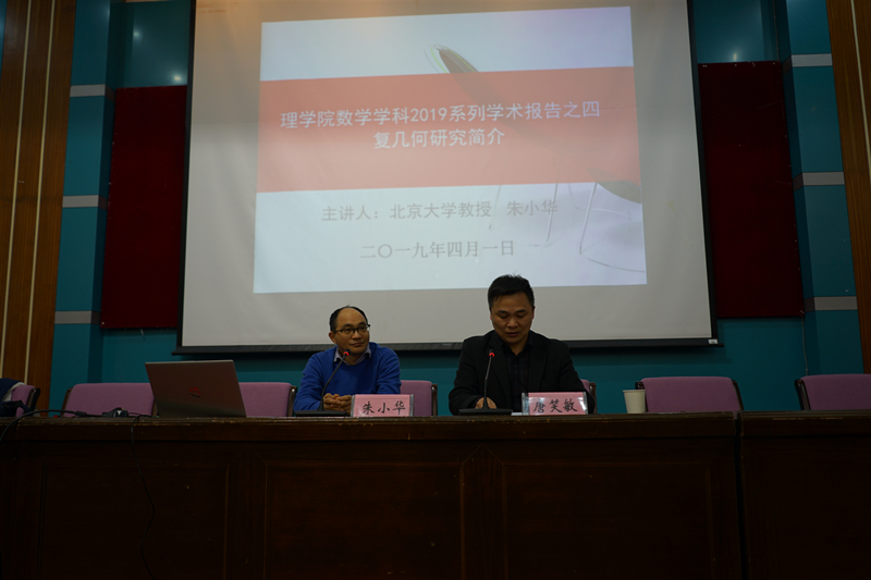 朱小华教授从数学概念中最浅显的平面理论作为切入点,逐步向在场的老师和同学们介绍当前数学学科的前沿研究,黎曼映射定理、环面、黎曼面单值化定理、 Teichmüller空间、复流形、高维等一系列介绍让在场的同学们受益匪浅。“没有想到我们平时理论课上学习的各种定理和理论朱教授可以结合那么多前沿的研究为我们展示出来,让我对数学这个专业更加感兴趣了。”一名在场的学生如是说。