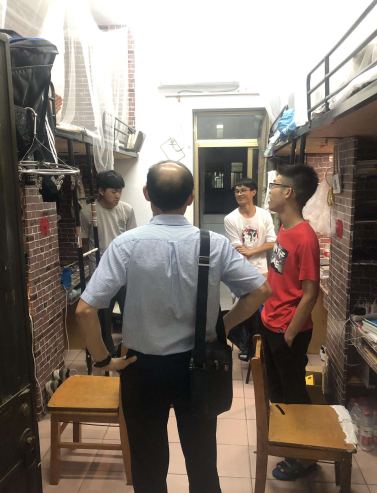 院领导走进各专业的学生宿舍,与学生们亲切交流。沈彩万老师对各寝室的安全隐患进行了排查,尤其是电线、插口、用电器等角落,确保每一名学生能够住在一个安全无危险的寝室中。