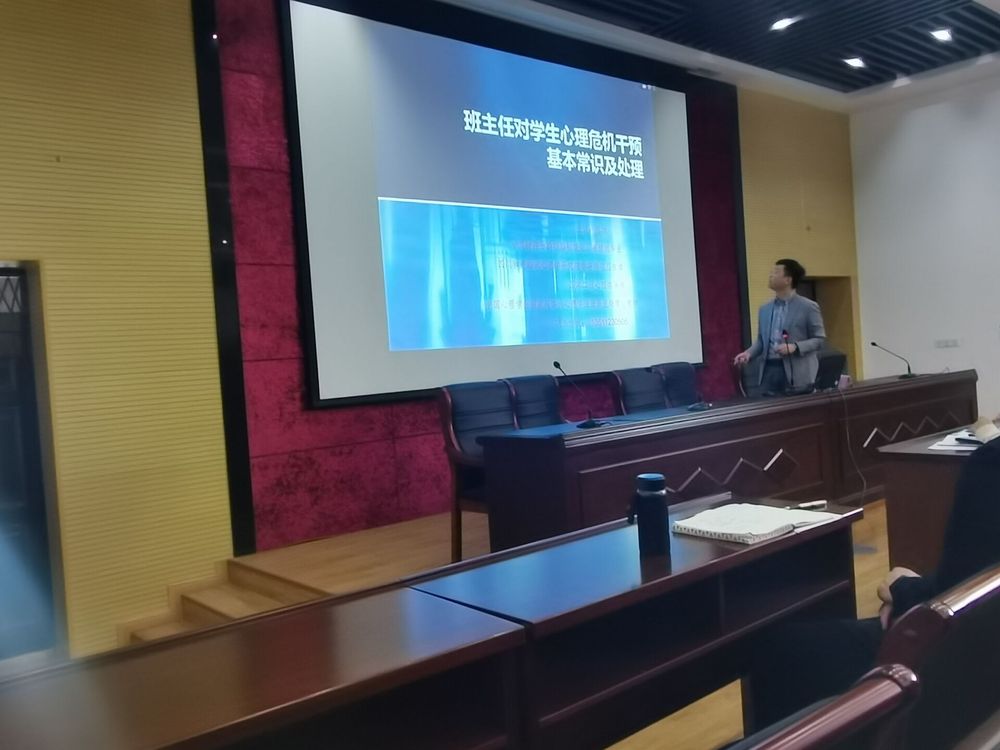 此次会议陈老师从什么是心理危机、如何识别学生心理危机、发现危机后如何进行处理三个方面进行了讲解。心理危机的概念是个体遭遇的时间带来的心理冲突、心理压力超过了自身的应对范围而引发的焦虑等心理失衡状态。心理危机干预一般是6-8周,早发现早关心和支持,避免发生极端行为。我们心理委员要做的就是善于发现,重视关注,及时上报,主动协助处理。最重要的就是及时上报,在自己不确定的情况下不要私自处理,以免发生极端行为。对于有心理危机的同学我们要多关怀、多倾听、多支持鼓励他们。心理危机分为显性现象和隐性现象,我们最不容易发现的就是隐性现象,所以我们要多多与同学交流,发现情况不忽略,及时上报。会议最后陈老师将整个会议总结为两点:1、关心人的态度要对;2、掌握尽可能多的学生情况,这就是我们现在要做的工作。