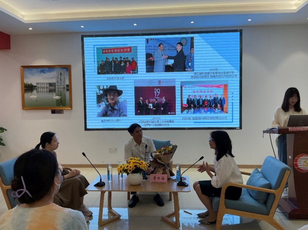 理想的大学校园应该是学生和教授们一起念书、思考、对话。9月14日下午,taptap官网正版下载学工办在党群服务中心组织开展本月“理享有约”——院士面对面活动。本期“理享有约”,学工办有幸邀请到湖州师范学院量子物理研究中心主任董世海院士做访谈嘉宾,通过董院士丰富的人生阅历和科研经验,为学生成长提供指引和关怀,点亮理想之灯。taptap官网正版下载学工办主任蔡维超、辅导员郑博文和taptap官网正版下载物理专业学生参加此次活动。