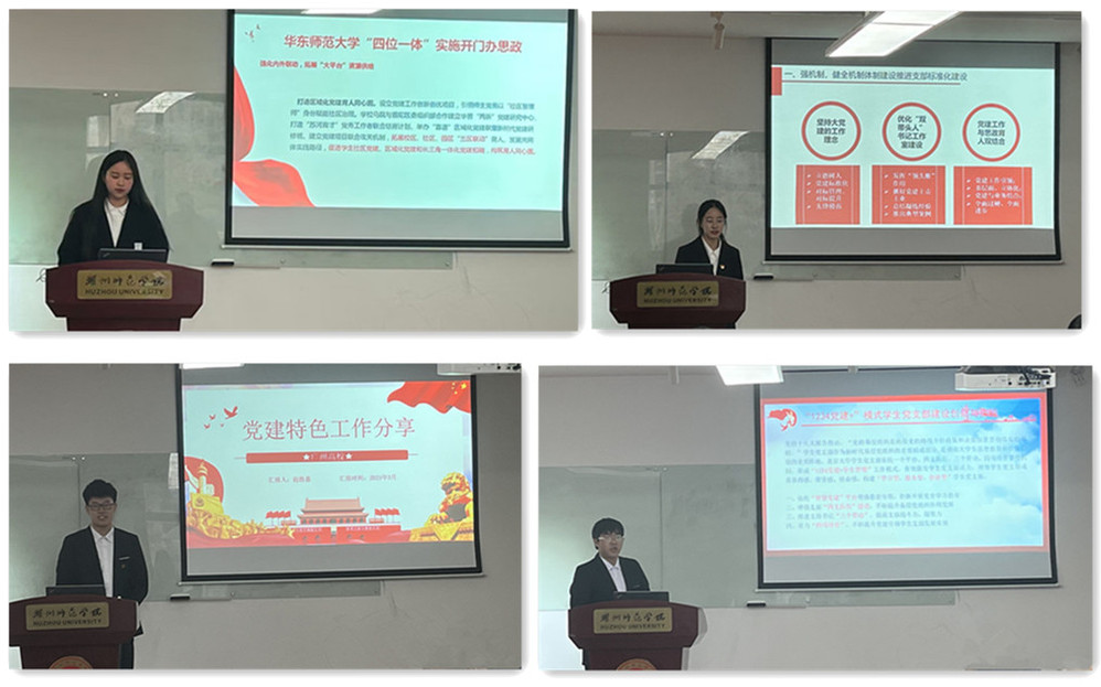 会上,李永强宣读了《taptap官网正版下载“支部建设年”实施方案》(湖师理党发〔2023〕2号)。随后,8位师生支部书记依次从党建引领学科专业建设、提升人才培养质量、促进服务地方发展、推动志愿服务升级、打造学院文化品牌等方面,就支部党建特色品牌的主要做法、亮点及成效作了精彩的汇报展示。4位学生党务秘书,结合前期资料收集整理情况,分享了“北上广浙”等地共12所高校“他山之石”党建特色经验做法,为学院各支部进一步凝练专业特色、培育文化品牌提供参考与借鉴。