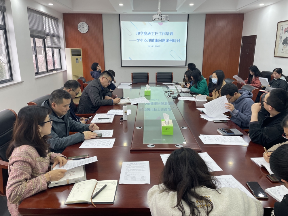 会议伊始,班主任们依次介绍了班级学生思想状况和学习情况,并就班级学习氛围营造、学习困难学生帮扶等话题积极讨论。随后,心理辅导员结合学生心理危机案例,对“班主任如何在日常工作中开展心理健康教育”进行培训,阐述了如何做好学生心理健康危机识别与应对,并对班主任提出了“多一些学习交流、多一些关心关注、发挥学生干部作用、及时上报潜在危机”等建议。学院副书记结合“班级建设年”的实施方案,布置了本学期学生工作的重点和要求,希望各位班主任“回归教育本源,积极开展班级建设活动,提升学生的幸福感和获得感。”最后,学院党委书记结合当前班级松散性和学生个体身份感弱化的问题,指出班主任工作面临着新形势和新情况,提出通过制度建设、班级文体活动开展、各类导师和教师聘任来加强班集体建设,通过关爱与情感投入,增加学生认同感和归属感。