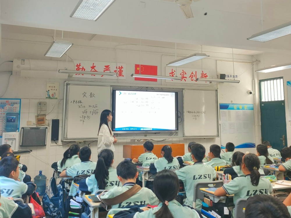 活动主要分两部分,在上午的交流汇报中,湖州师范学院两位实习生付景琪和罗苏倩分别做了题为《第三章实数复习》和《两个三角形相似的判定2》的汇报课,付景琪同学以实数概念复习、概念辨析、化简计算、知识应用为主线,帮助学生复习巩固了实数的相关知识;罗苏倩从回顾相似三角形判定1入手,结合全等三角形类知识点,引发同学思考相似三角形判定2的相关条件。两位实习生教态都很自然,有自信,课堂上注重与学生互动,知识呈现出色。