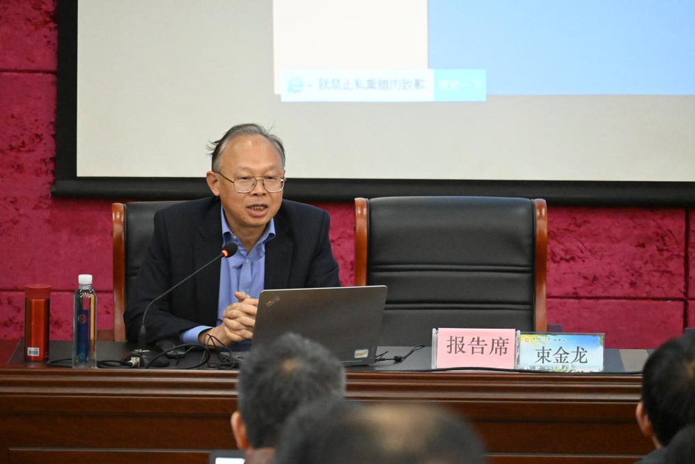 培训会邀请中国金融专业学位研究生教育指导委员会委员、上海市学位办原主任,上海市教委高教处原处长,上海研究生教育学会秘书长束金龙教授给全校硕导作了题为“导师队伍建设是建设研究生教育强国的先导基础”的专题报告。束教授结合党的二十大关于教育、科技和人才的重要论述,从中国研究生教育历史和现状、学科专业建设的历程与方向、研究生培养质量保障与提升和研究生导师队伍建设及要求四个方面,与参会导师展开探讨。