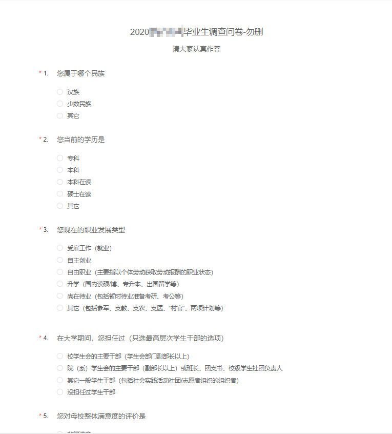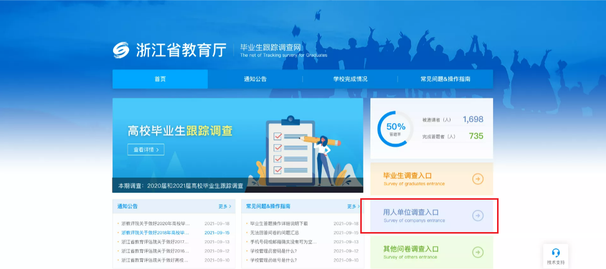 进入网站首页后,点击毕业生调查入口进入入口页面。
