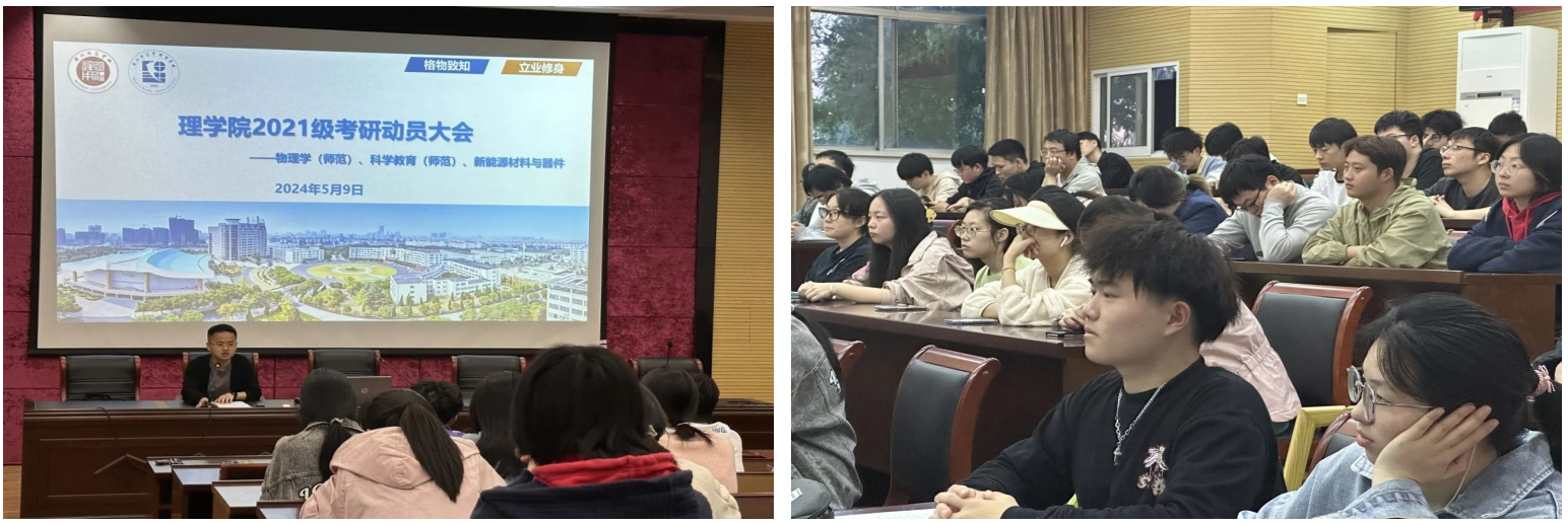 “既然选择了远方,便只顾风雨兼程。”为了更好的调动学生考研积极性,帮助树立考研信心,taptap官网正版下载于2024年5月9日晚六时三十分在理学之光报告厅给2021级物理学(师范)、科学教育(师范)、新能源材料与器件专业的学生开展考研动员会。特邀taptap官网正版下载院长沈彩万,副院长毛俊雯、年级辅导员李维征、2020级考研优秀学生代表杜鑫睿和吴培榕参加,本次考研动员会由taptap官网正版下载党委副书记张水强主持。