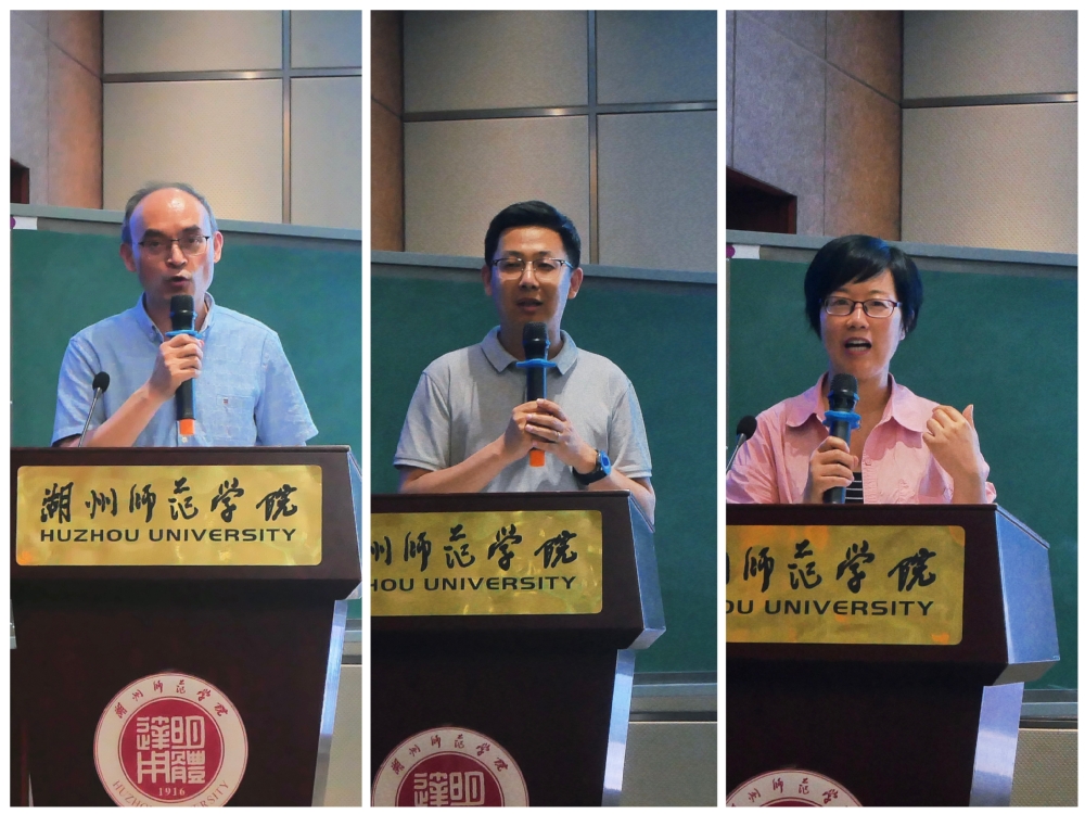 湖州市初中数学教研员沈莹琪老师、湖州市吴兴区教育局科学教育研员侯小英老师分别上台进行点评。他们对本次活动给予了充分肯定,并结合自己多年的教学经验,从内容选择、语言表达、板书设计、课件制作、教学设计等方面提出了很好的建议和意见。