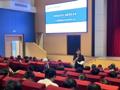 随后,学院副院长唐矛宁围绕“理、学、愿”三个关键字,重点围绕学风建设,首先梳理了上一年度学院补考、重修的学生人数,给同学们敲响警钟,希望同学们抓紧梳理各科目知识点,合理利用时间和学习资源,并祝愿同学们通过自己的努力收获好成绩,实现自己的理想。