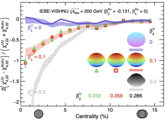 原子核通常都具有偏离球形结构的形变,这反映了原子核内强相互作用的性质。原子核形变的研究对于核合成、核裂变及无中微子双贝塔衰变的研究等都具有重要意义。铀原子核的十六极形变效应通常被其四极形变所掩盖,很难通过传统的方法测量。taptap官网正版下载徐浩洁副研究员(第一作者兼通讯作者)与合作者研究发现,四阶各向异性流的非线性响应系数非常敏感于碰撞原子核的十六极形变,并且该观测量不敏感于碰撞核的四极形变和尺寸,因此是测量铀原子核十六极形变的理想探针。相关成果以“Hexadecapole deformation of 238U from relativistic heavy-ion collisions using a nonlinear response coefficient”为题发表在PRL上。这项工作提供一种在幺秒时间尺度研究原子核高极形变的全新思路,为解决相对论铀铀碰撞的椭圆流难题提供了关键性的作用。相关物理量未来有望在美国相对论重离子对撞机RHIC上进行精确测量,并运用到同量异位素核碰撞等其他碰撞系统中。