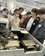 在参观中,暨芯研究院陈博士为同学们深入讲解了半导体芯片的制作过程,从晶圆制备到各个复杂精细的加工环节。其中,光刻机光刻胶的应用更是重点内容,同学们深刻体会到前沿技术在芯片制造中的关键作用,使同学们对芯片制造这一高科技领域有了初步了解。