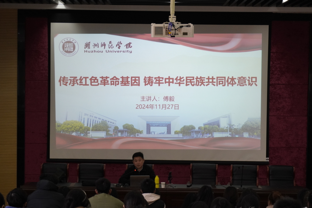 本次宣讲邀请到浙江省新四军历史研究会浙东研究分会副秘书长傅毅作为主讲嘉宾,为全校各民族学生代表带来了一场题为“传承红色革命基因 铸牢中华民族共同体意识”的精彩宣讲。本次宣讲活动主要围绕“抗日战争”“解放战争”“红色革命历史图片展”“迈向新时代,重走先辈战斗之路”这四大部分,讲述了抗日战争和解放战争期间振奋人心的历史故事,展现了共产党人的信念以及革命者无私的奉献精神。宣讲中,傅毅用生动的语言以及丰富详实的历史资料,阐述了在不同历史时期,各民族携手并肩、共同团结奋斗、共同繁荣发展的伟大征程。宣讲唤醒了同学们的历史记忆,让大家深刻认识到今天的幸福生活是先烈们用鲜血和生命换来的,中华民族的发展史是一部各民族共同创造和书写的历史。