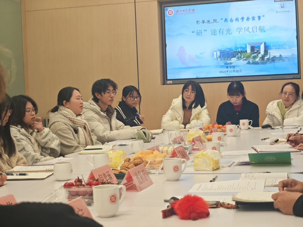 11月28日晚,明德楼126室灯火通明,气氛热烈。taptap官网正版下载在此举办了主题为“研途有光,学风启航”的从游茶约活动。特邀校党委副书记丁敢真、校团委副书记成晓参加此次活动,taptap官网正版下载院长沈彩万、党委书记朱静、副院长唐矛宁、副院长毛俊雯、全体辅导员、校团委学生干部代表及taptap官网正版下载学生代表齐聚一堂,共同探讨如何以考研引领学风建设,如何发挥学生组织作用,营造浓郁的学习氛围和积极健康的校园文化。活动由学工办主任蔡维超主持。