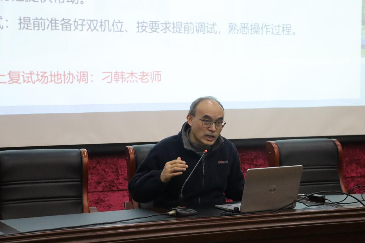 活动分为集体指导和模拟面试两大环节。在集体指导环节,沈院长系统讲解复试全流程,涵盖考前准备、面试技巧、调剂策略及注意事项,并重点强调“能上尽上,能调剂尽量调剂”的目标。