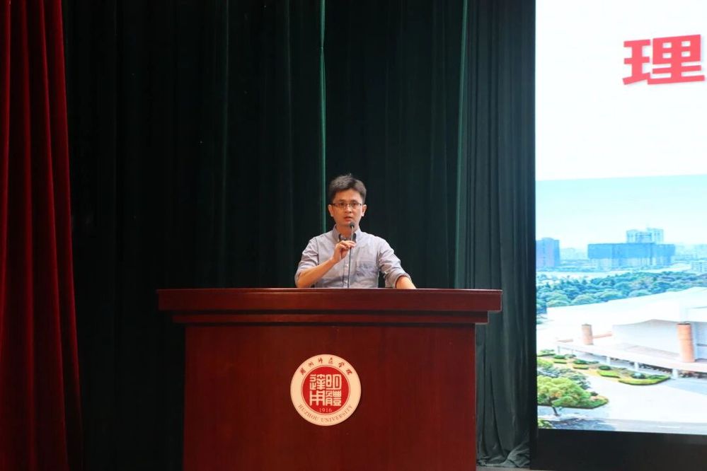 教师代表、应用物理系吴璠老师向新生分享了治学与成长经验;班主任代表吴利敏老师鼓励新生积极适应大学生活。