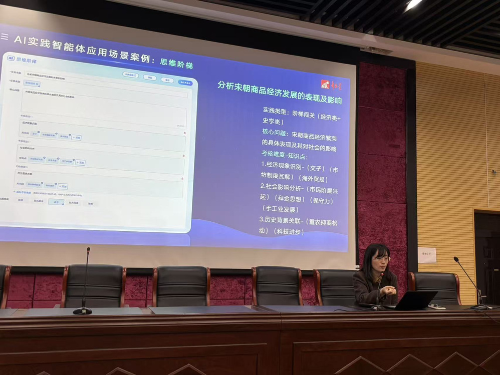 培训过程中,超星学习通的专业培训讲师围绕“AI赋能智慧课程”展开详细讲解与案例介绍。在内容分享环节,讲师结合当前教育教学的实际需求,深入剖析了AI技术在课程设计、资源整合、学情分析、互动教学等方面的应用场景与优势。从知识库的搭建、实践智能体的生成,到基于大模型的知识图谱、实践操作的虚拟交互,通过清晰的理论阐释,让教师们对AI赋能教学有了更全面、深入的认知。