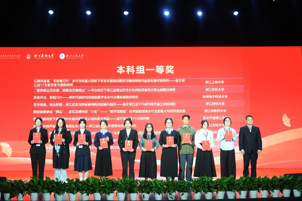 浙江省大学生统计调查方案设计大赛作为浙江省A类学科竞赛之一,该赛事以“深入实际,调研社会”为主题主线,旨在引导广大青年学子将专业的统计分析方法与鲜活的经济社会发展、民生需求等紧密联系起来。本次大赛参赛作品聚焦于乡村振兴、数智共富、低空经济等国家、浙江发展战略与产业需求,从多个维度呈现了统计调查分析方法的应用领域与广阔前景,有效增强了青年大学生深入一线调研的责任意识与创新能力。通过此次大赛,学校将持续坚持“以赛促学、以赛促教、以赛促育、以赛促研”,致力于为社会培养更多高质量的统计学科专业人才,以适应数据科学时代的挑战。