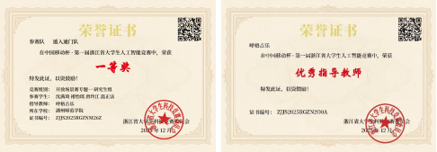 近日,2025年“中国移动杯·第一届浙江省大学生人工智能竞赛”决赛在杭州电子科技大学顺利举行。全校共选派30支队伍参赛,经过初赛筛选、复赛答辩等环节的激烈角逐,我院学子凭借扎实的专业功底和创新思维,荣获省级奖项5项,其中包括一等奖1项、三等奖4项,获奖数量占本校获奖总数的50%。值得一提的是,呼格吉乐老师因在赛前赛中倾情指导,荣获“优秀指导教师”称号。