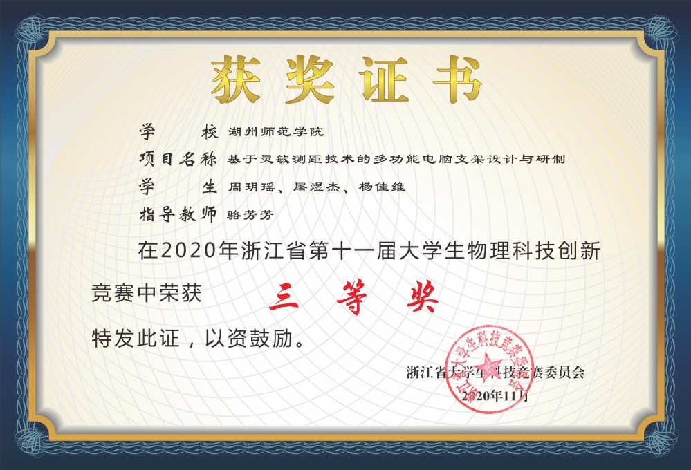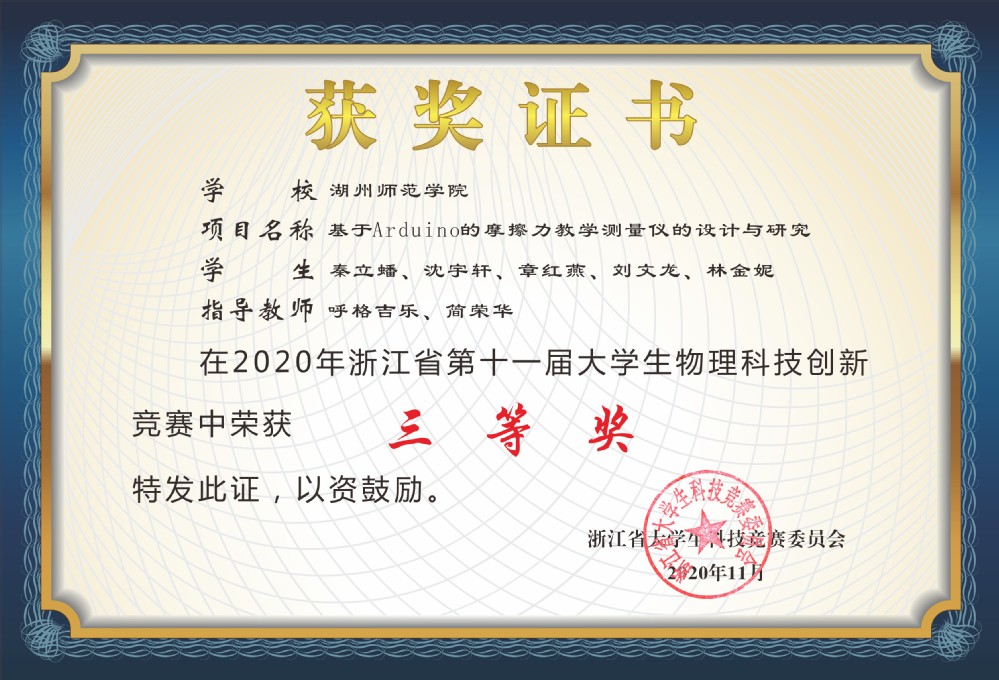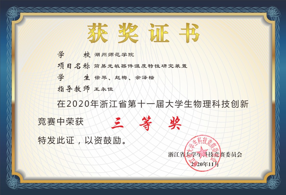 浙江省第十一届大学生物理科技创新竞赛学生获奖