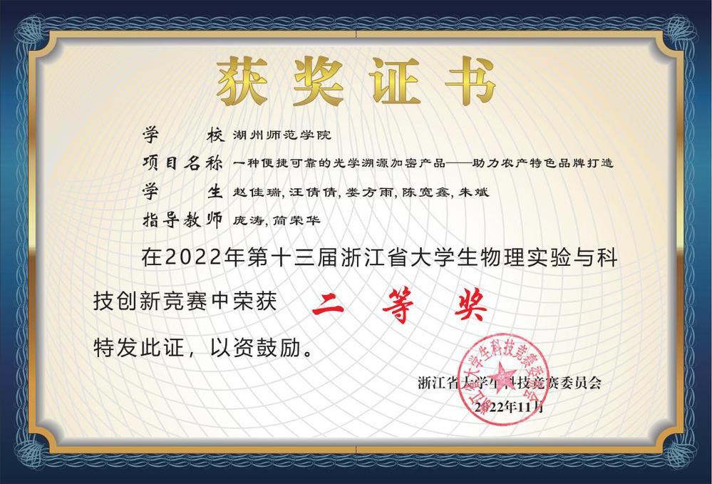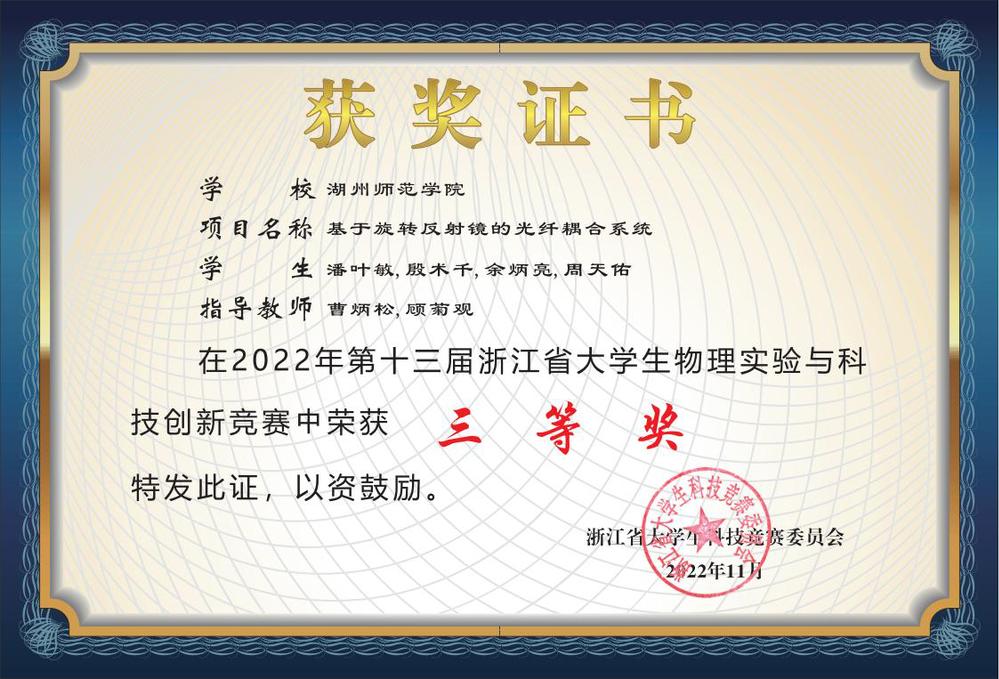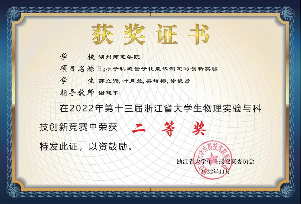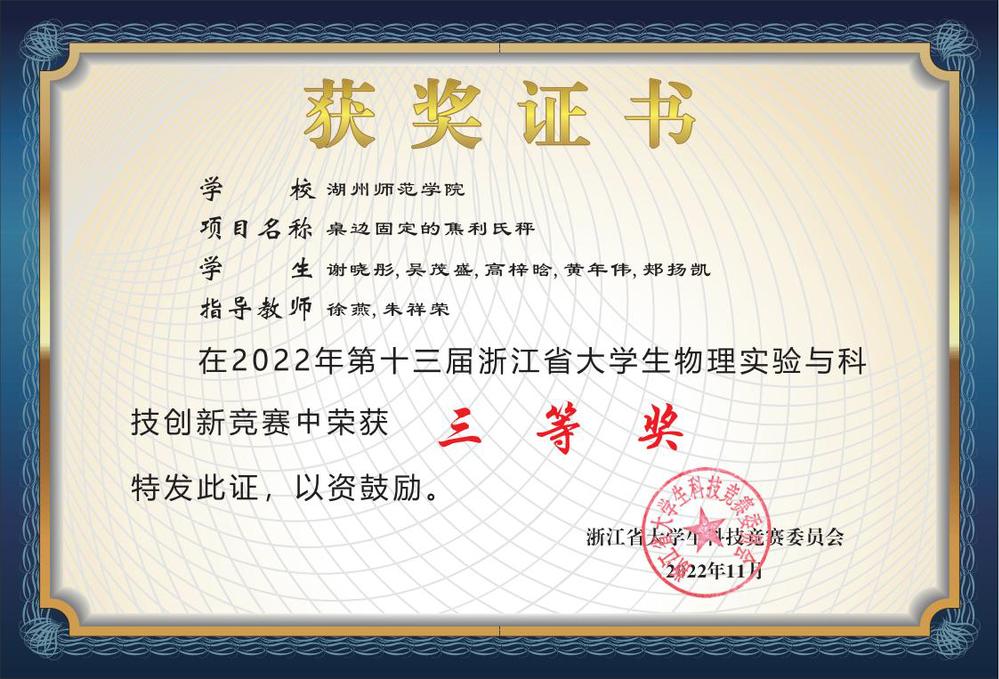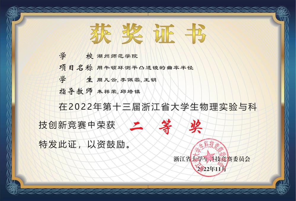 浙江省第十三届大学生物理实验与科技创新竞赛获奖