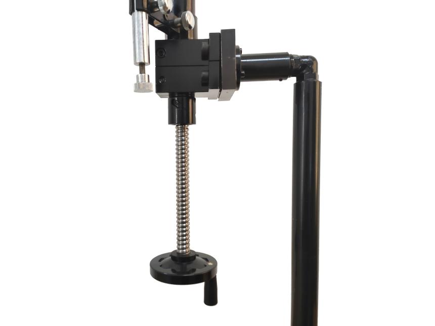 垂直安装金属弯臂,手轮的操作留下充足的空间,能够有效防止转动手轮时误触仪器本体,导致仪器受到外力影响产生震动而使实验数据产生误差。